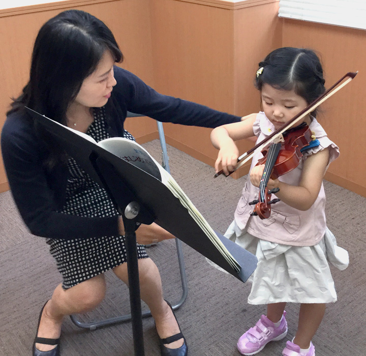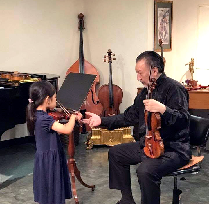 楽器を奏でる上で「しっかりとした基礎」はどこへ行っても通用する言わば共通語です。「正しい姿勢、正しい弓の持ち方、左手が機能的に動く事」を徹底し、長く弾いても疲れない姿勢を作る。そして体の内部の筋肉の動きを考え、個人差のある体型それぞれに合った持方、弾き方を追求しさらに、筋肉の動きを意識することで足りないところ補う。基礎を怠りなく練習をすることで今後、幅広く音楽を楽しめるよう、子供のあり余る好奇心をエネルギーにかえて着実に一歩一歩・・・そういったレッスンを心がけます。