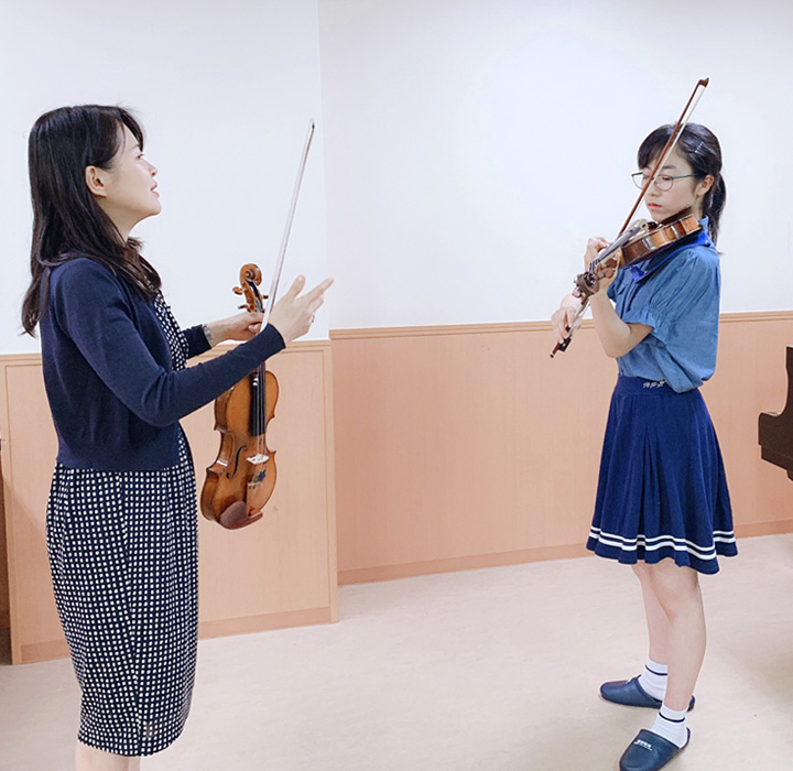 現在オーケストラや室内楽などで活躍するヴァイオリンとチェロの演奏家が丁寧に指導にあたります。